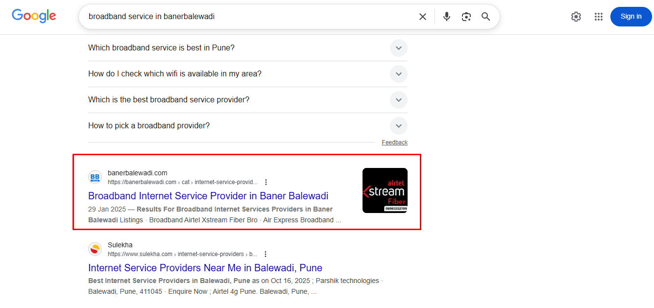 Case Study 2: Airtel Xstream Fiber Broadband Internet Service Provider in Baner.